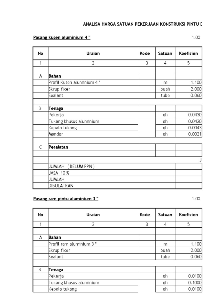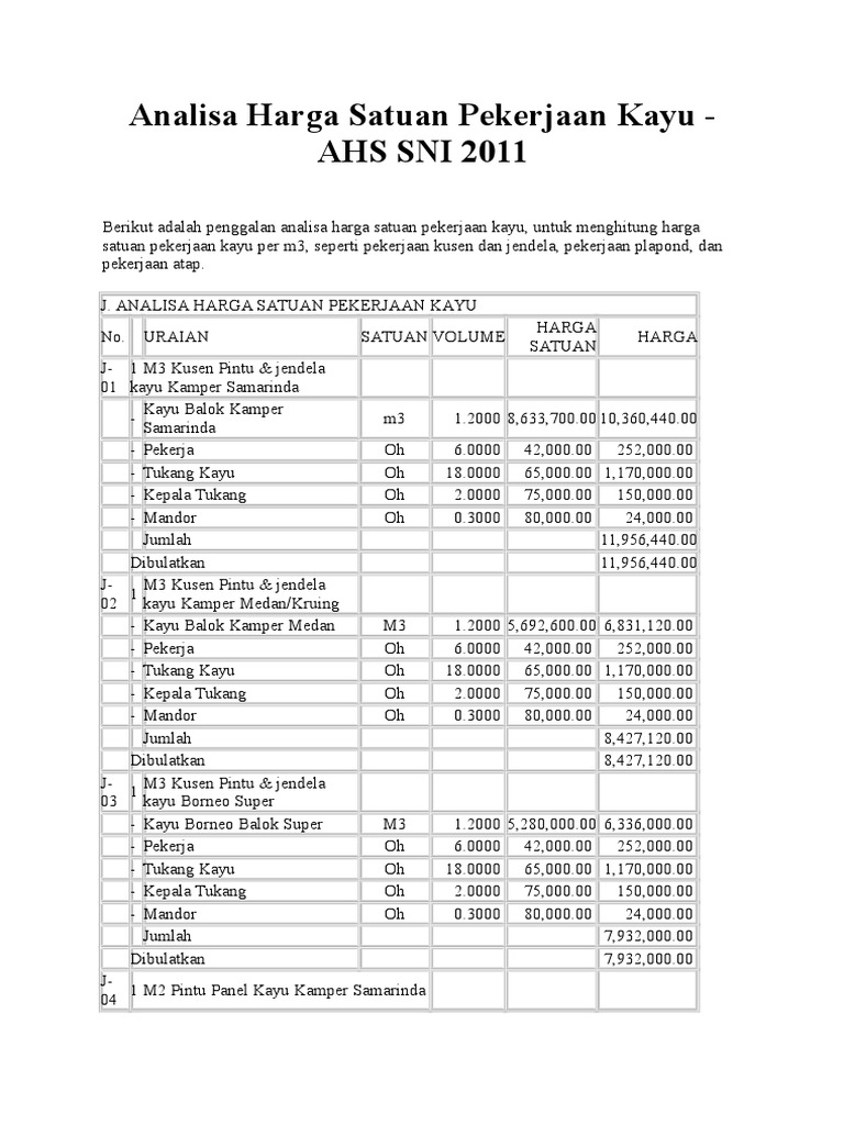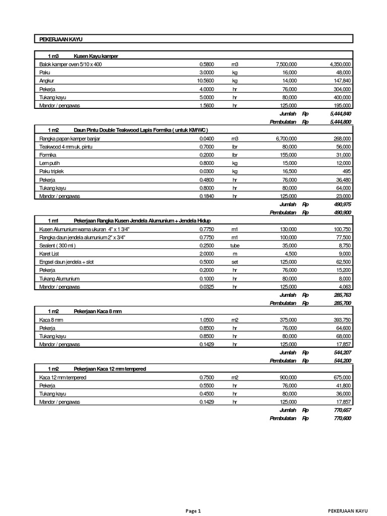 Analisa Harga Satuan Pekerjaan Kayu Pdf